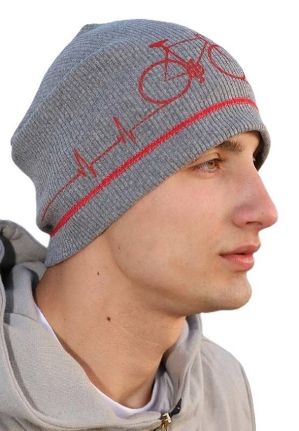 12358 IT NONONO beanie muts Bicycle grijs met zeefdruk