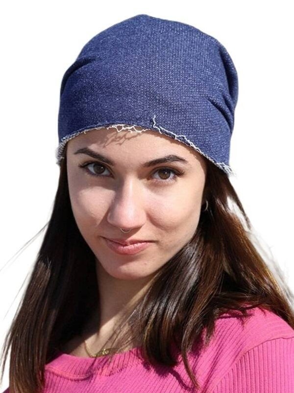 Trendy Italiaanse beanie met een stijlvolle StreetStyle destroyed denim look.