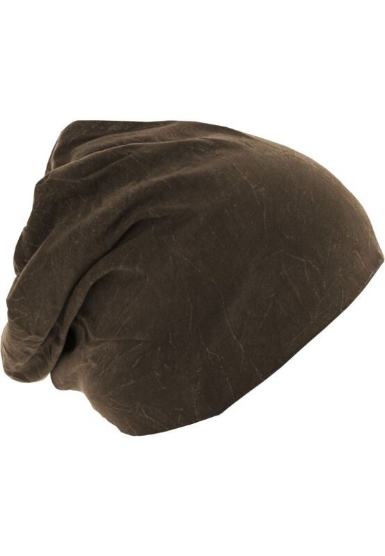 De jersey beanie van Masterdis is uitgevoerd in een zachte, trendy stonewashed look.